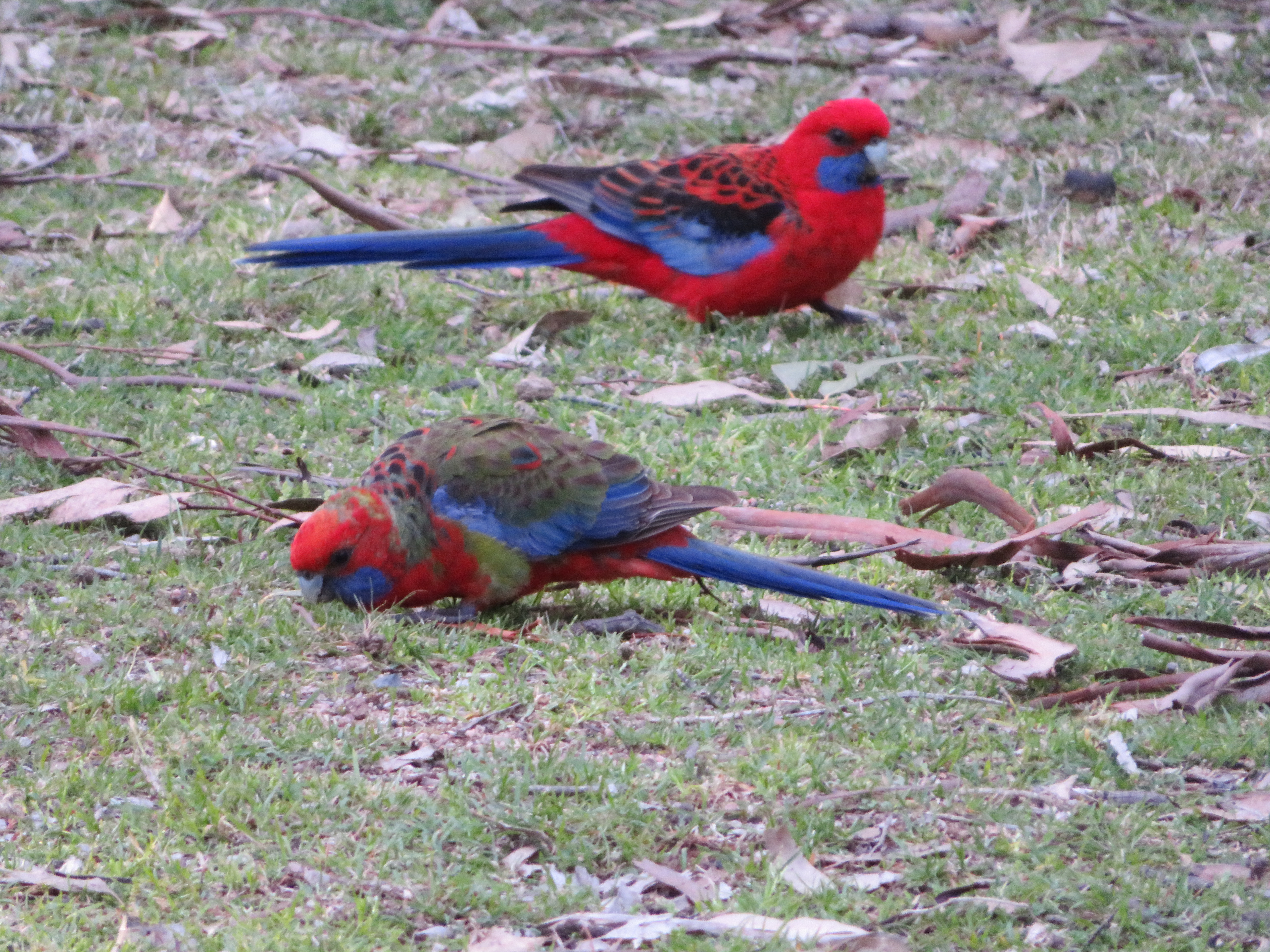 That’s a funny-looking Rosella, I hear you say. I, too, am puzzled by it – the patterns of green are similar to the Eastern Rosella, but it doesn’t have the yellow chest and wings. So I honestly have no idea what it is, but its buddy is the regular Crimson Rosella.