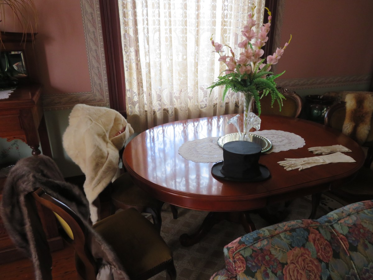 img_1031 ← Previous Next → Some old fur coats, hats and gloves on the table. The pale one was worn by Marilyn Monroe in the movie Gentlemen Prefer Blondes.